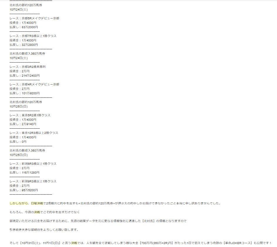 情報名:北村氏の副収入360万馬券