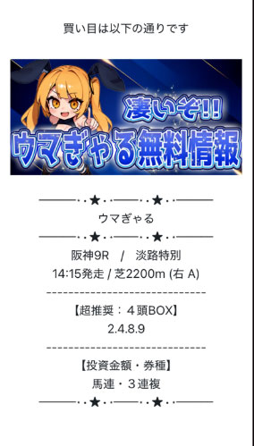 そして次の日の日曜日に公開されていた買い目がこちらになります。