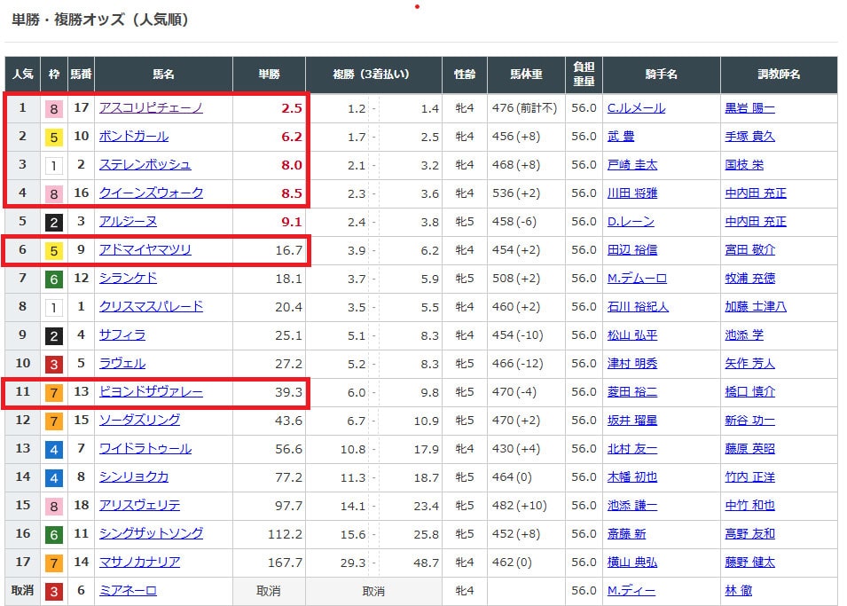 ヴィクトリアマイルは今年も荒れるかと思いきや、1番人気のアスコリピチェーノの勝利で終わりましたね。