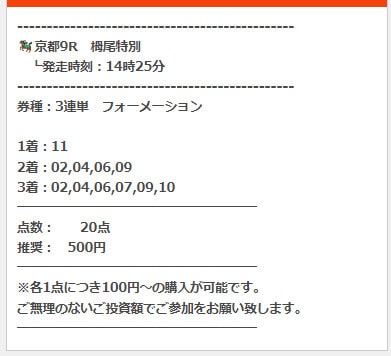 有料情報検証初日【11月29日(土)】公開されたレースは京都9Rでした。