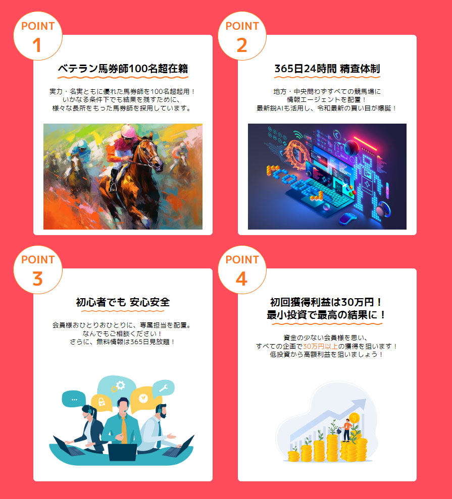勝てない…、儲けたい…、始め方が分からない…等の競馬の悩みは全部お任せとのこと