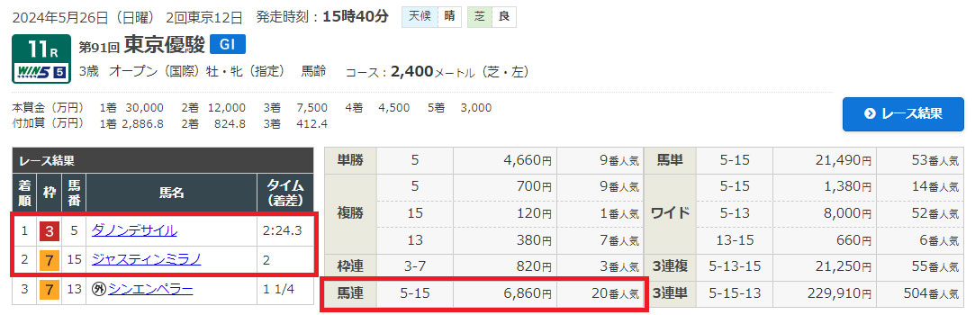 東京競馬場11Rの日本ダービー(G1)の予想になります。