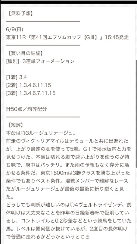 そしてエプソムC(G3)の予想も出すようなので検証したいと思います。