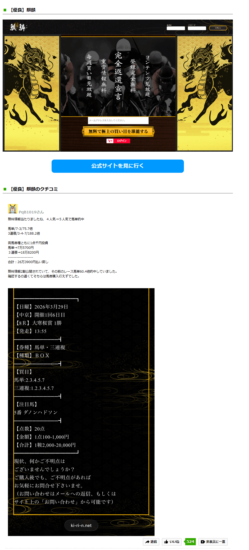 【無料情報】“祝”万馬券的中!