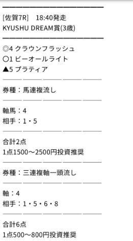 そしてさっそくLINE登録して、土曜日に公開された情報は2レース分ありました。