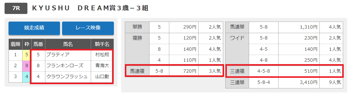 1番人気の⑥を切っていましたが、人気の3頭で決まってしまいましたね。