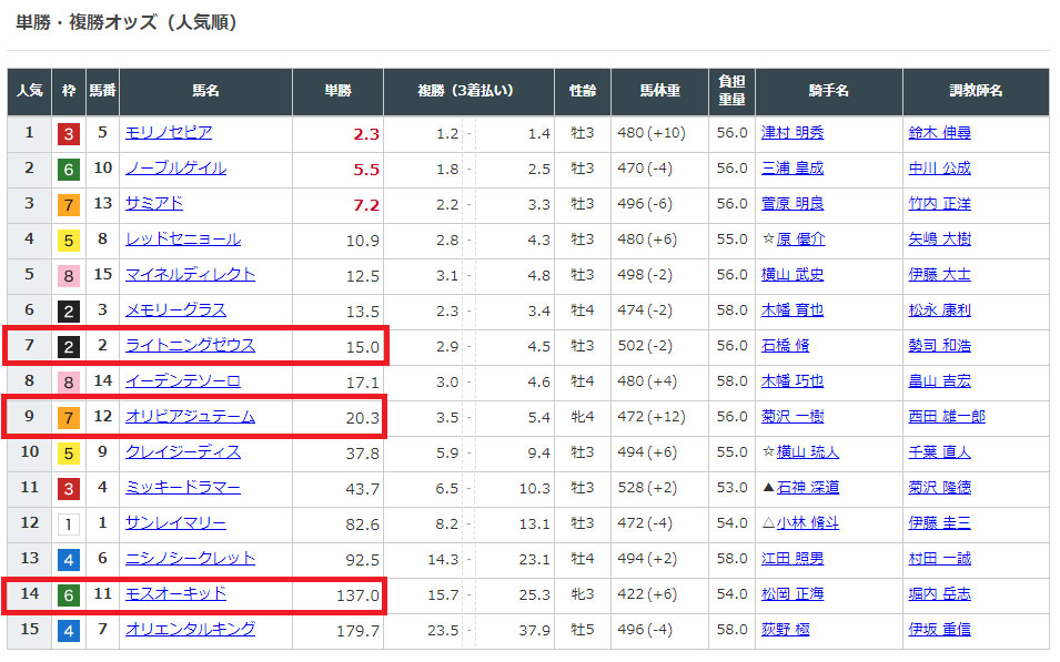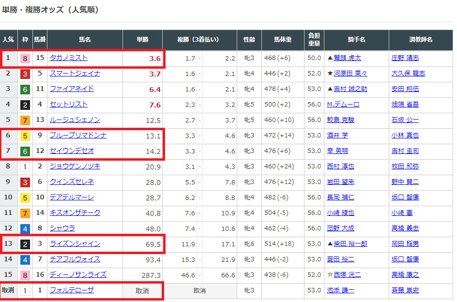 断トツ1番人気の馬ではなく5番人気の馬を軸にしているのでこれも美味しいオッズに期待したいです。