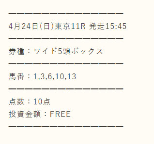予想内容もしっかりしていて、無料予想でも馬連での提供は自信の現れである!