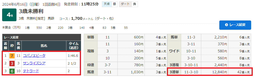 4Rと5Rの立て続けになりますので、まずは4Rから見ていきたいと思います。
