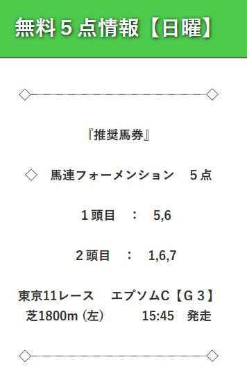 管理人の田中がガチ予想したエプソムカップ予想は3連複72.6倍の的中をお届けできました、ご参加された会員の皆様の参考になれて幸いです。