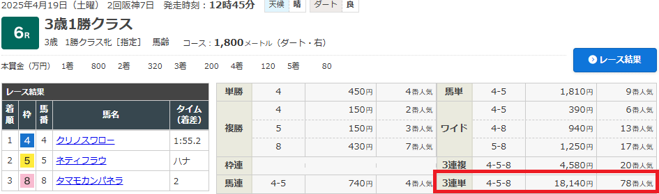 払戻しは18万1400円!回収率は驚異の605%!