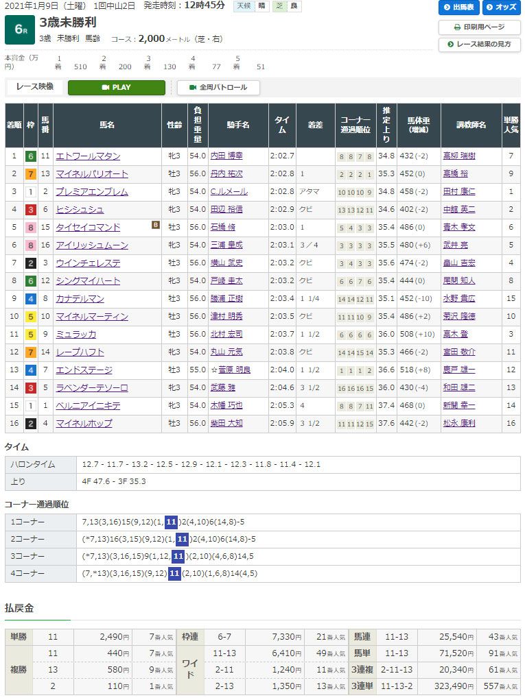 若干疑いの目を持ちつつ結果を確認したところ、馬券に絡んでいたのは2番の1番人気だけ、1着に固定している2-6は1番人気2番人気なので素人でも組める組み方、ましてやこの組み方は素人以下なのではと更に疑いの目を持ちつつ、日曜日の検証も行いました。