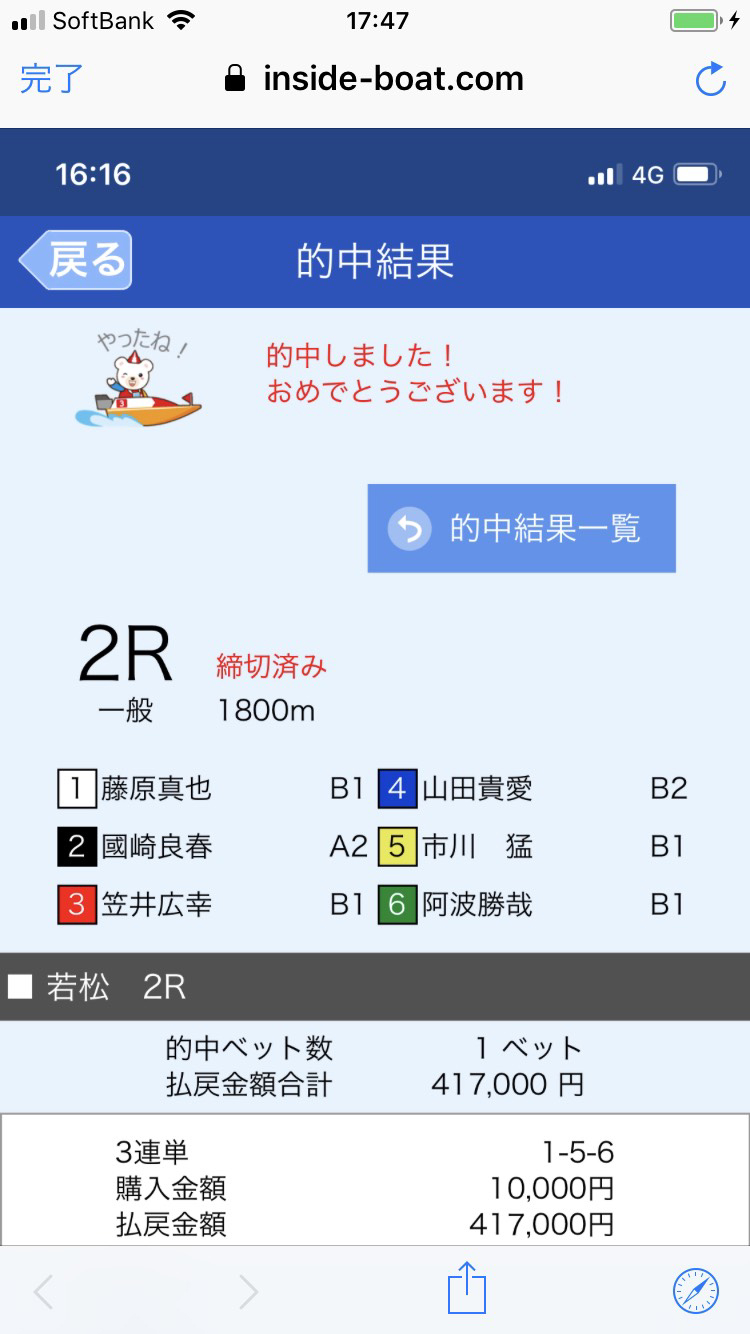 荒れれば荒れるだけ当たりますねー 2日で万舟3本貰っています