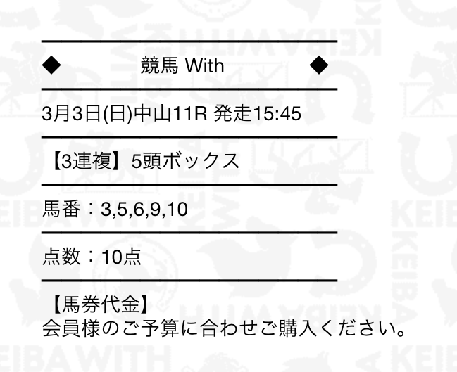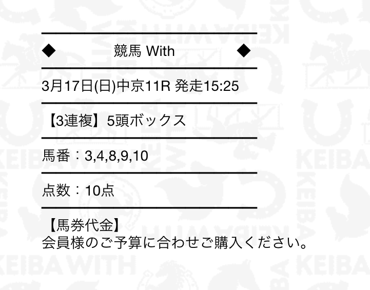 検証見て気付いたけど本当に適当な予想してるね、間違いない、競馬withは悪評だわ