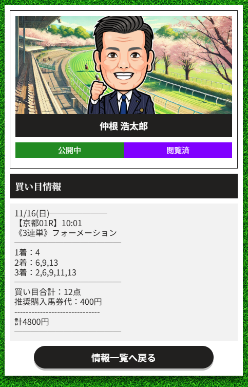 難しいハンデ重賞戦的中あざっした! 明日G1資金が貯められました、57,700円の配当でした! 明日も重賞無料で出るよね?楽しみにしています!