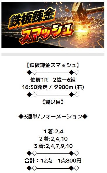 こういう競馬サイト探してました。 素人じゃ9番人気に本命打って軸なんて到底無理。 万馬券的中貰えたし5,400円の馬券代で配当も212,550円と上出来すぎる結果でした。