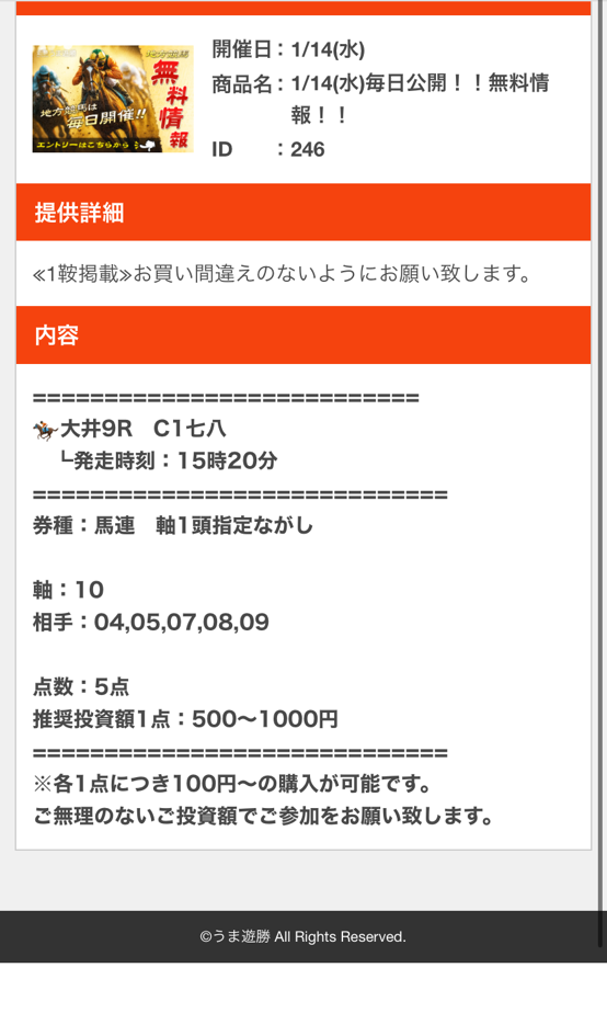 初回から重賞的中で相性抜群の予想サイトです。