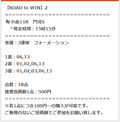 開幕週の小倉メインで万馬券的中貰えました!